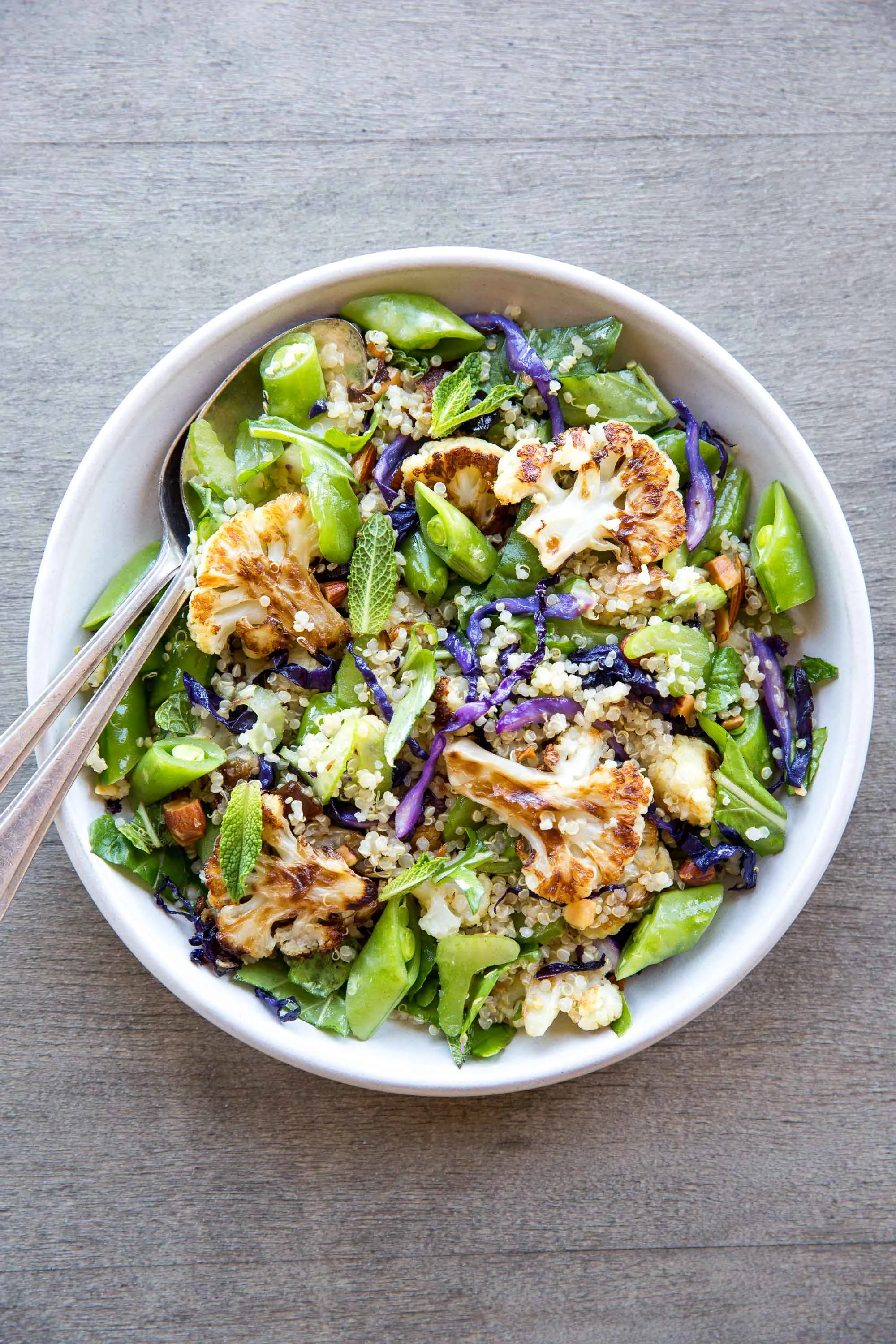 - Add the rest of the salad ingredients to the cauliflower and cabbage.